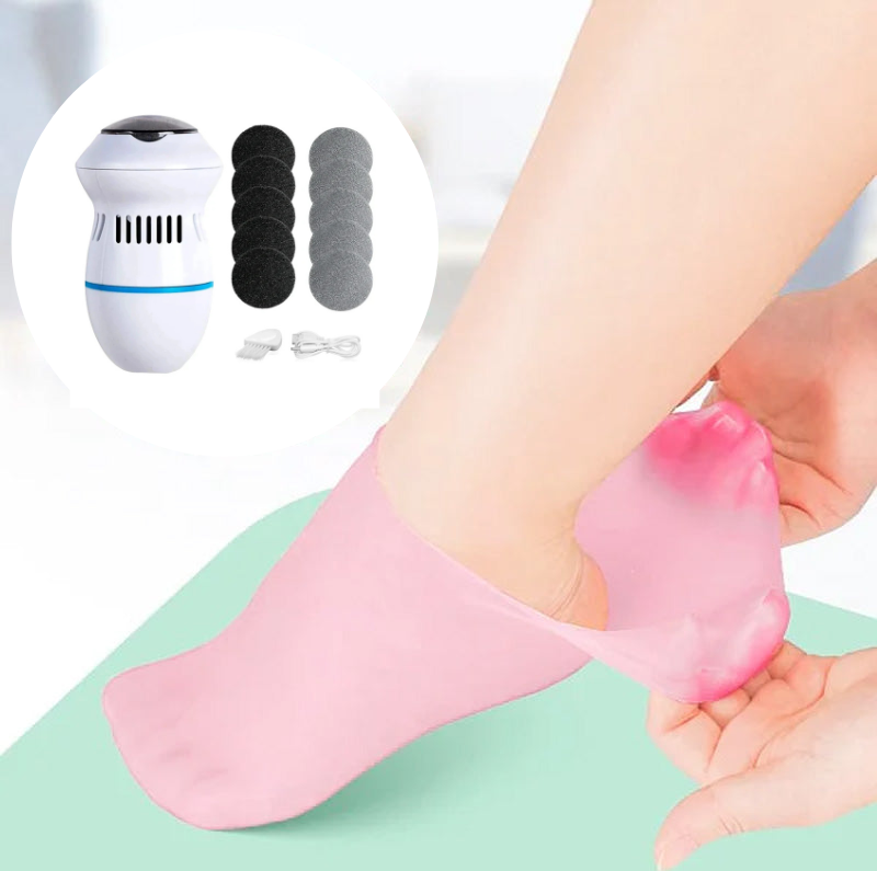 Spuneți adio bătăturilor și picioarelor aspre datorită râșniței electrice pentru picioare și șosetelor din silicon – duo-ul perfect pentru picioare moi și îngrijite. Râșnița electrică elimină eficient pielea moartă și bătăturile în câteva secunde, fără efort, pentru o piele netedă și strălucitoare. Apoi, purtați șosetele hidratante din silicon, care rețin hidratarea și hrănesc pielea în profunzime, optimizând astfel rezultatele îngrijirii dumneavoastră.
